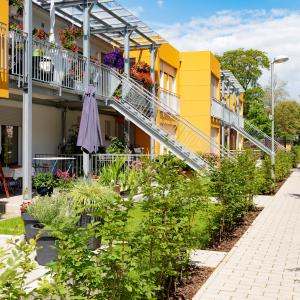 Das Wohnquartier an der Dresdener Straße in Wesel wurde in einem Stil gestaltet, der sich harmonisch in das Gesamtbild einfügt. Es orientiert sich an der Architektur des zuvor modernisierten Bauabschnitts an der Leipziger Straße 1-11a, sodass eine farblich und stilistisch abgestimmte Gestaltung erreicht wird. Es wurden 14 öffentlich geförderte Wohneinheiten geschaffen, die den Bedürfnissen von Senioren, Menschen mit Behinderungen sowie Studierenden und Familien gerecht werden. Die Fertigstellung erfolgte im Jahr 2020.