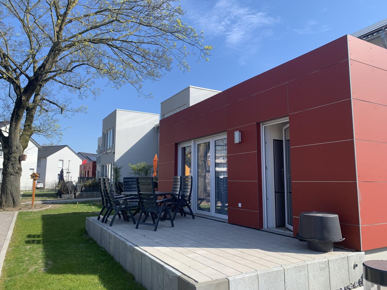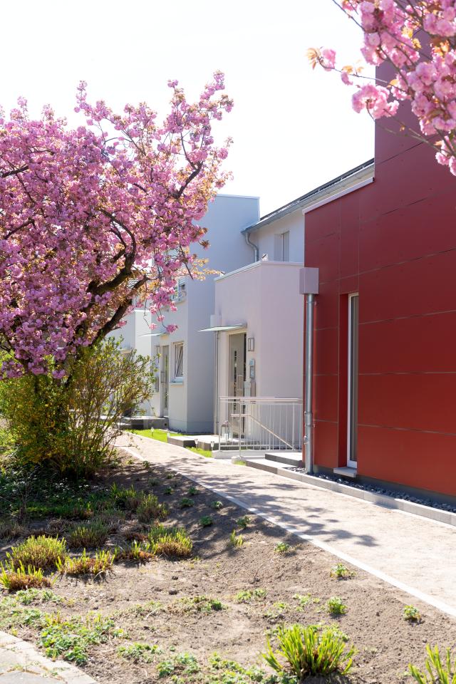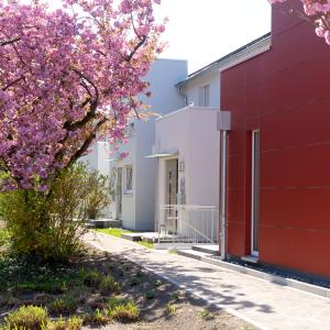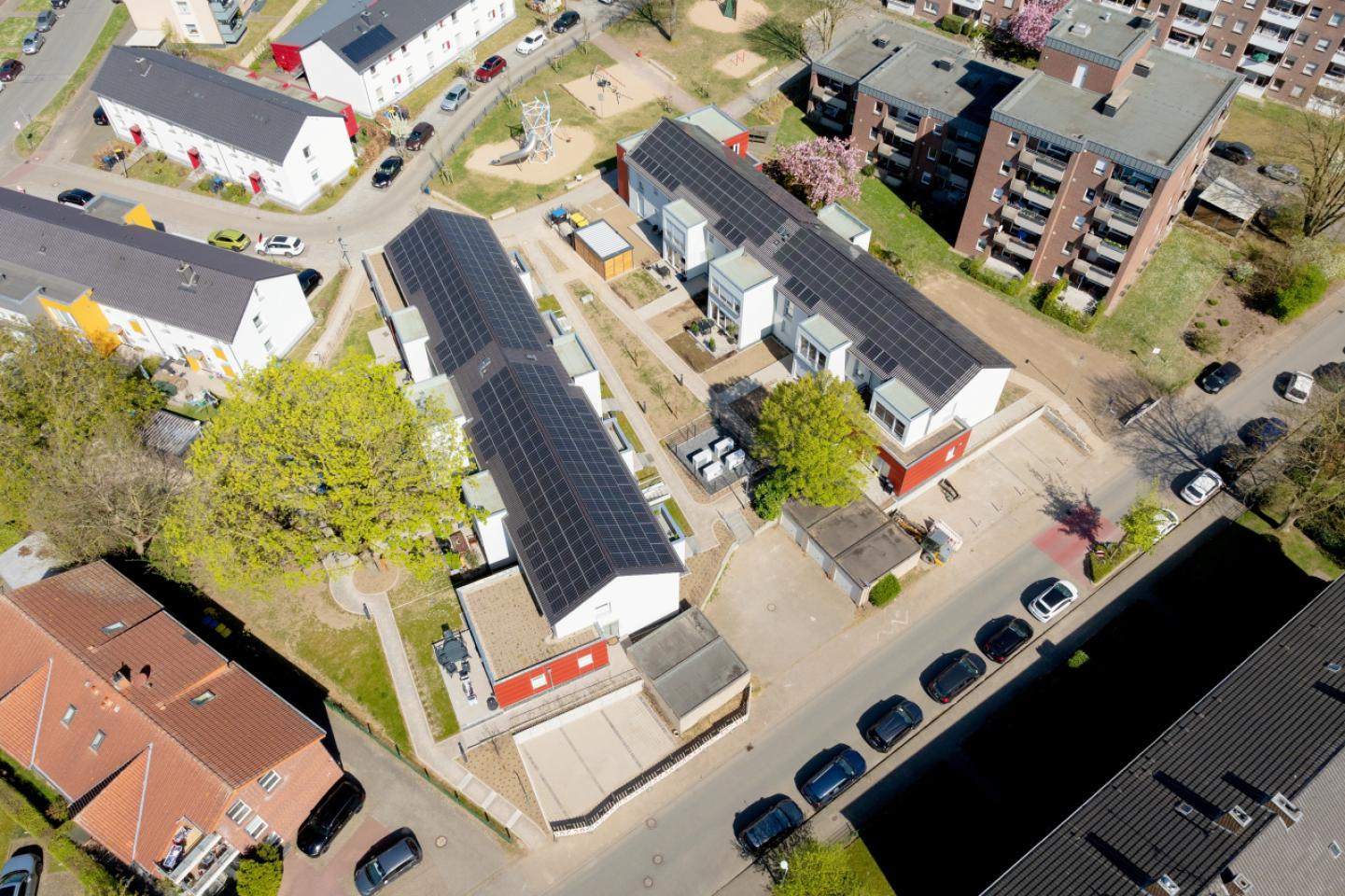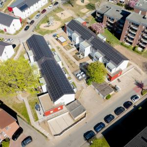 Das Wohnquartier im Zitadellenviertel von Wesel wurde umfassend saniert und modernisiert, um zusätzlichen Wohnraum zu schaffen. Dies wurde durch die Umgestaltung der Grundrisse und die Anbringung von Anbauten realisiert. Jede Wohnung verfügt über einen eigenen Zugang und ist mit bodengleichen Duschen ausgestattet. Eine moderne Luft-Wasser-Wärmepumpe sorgt für eine effiziente und nachhaltige Wärmeversorgung. Auf den Dächern wurden Photovoltaikanlagen installiert, die zur umweltfreundlichen Energieversorgung des Quartiers beitragen. Neben frei finanzierten Wohnungen gibt es öffentlich geförderte Einheiten, die eine vielfältige Bewohnerschaft ansprechen und den sozialen Zusammenhalt fördern.