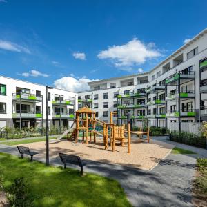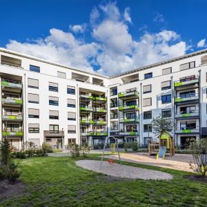 Dort, wo sich die Düsseldorfer Stadtteile Eller und Lierenfeld treffen, entstand bis zum Sommer 2017 das neue und moderne Wohnquartier Kastanienhöfe DüBS. Die maroden 50er-Jahre-Mehrfamilienhäuser wurden abgerissen und an ihrer Stelle ein zeitgemäßer Wohnkomplex errichtet, der das Quartier Eller/Lierenfeld bereichert und aufwertet. Während die Anzahl der Wohneinheiten gegenüber dem Altbau gleich blieb, wurde der Wohnraum erweitert.