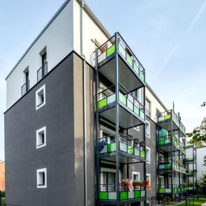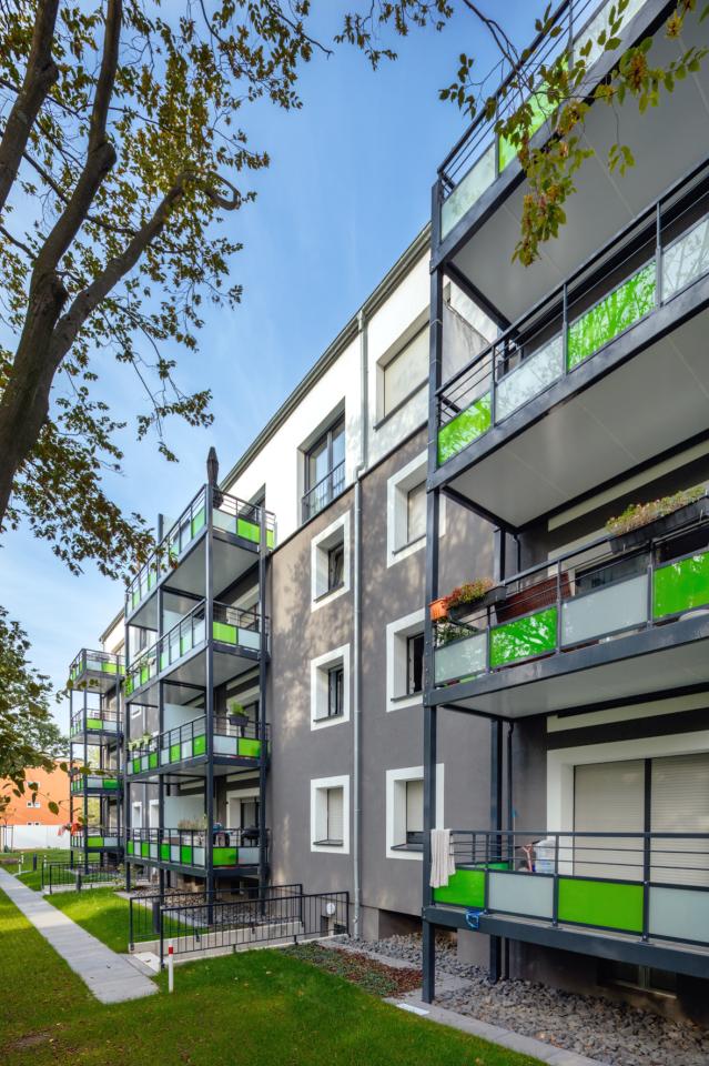 Eine Verjüngungskur verordnete die DüBS ihren 1964 erbauten Häusern der Lürmannstraße 8-14: Vom neuen Wärmedämmverbundsystem, neuen Fenstern, Balkonen, Türen, Heizungsanlagen, Grundrissumgestaltungen, Wohnraumerweiterungen durch Dachgeschossaufbauten und modernisierten Bädern bis zur Neugestaltung der Außenanlagen gab es ein grundlegendes „Facelift”.