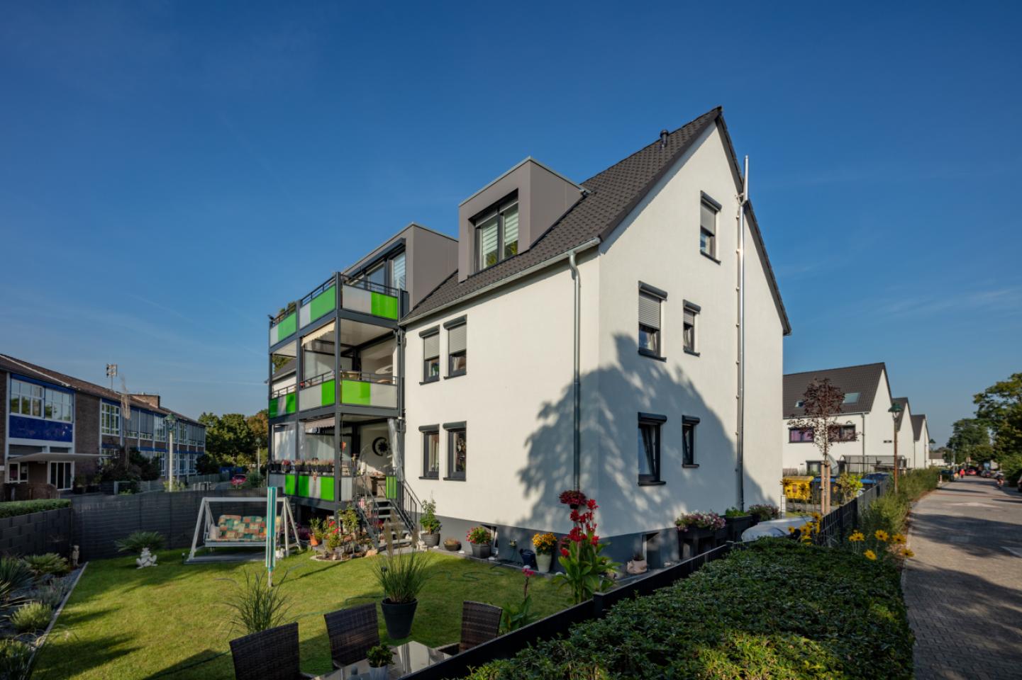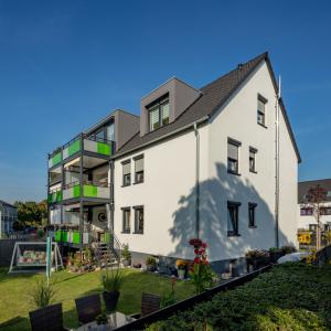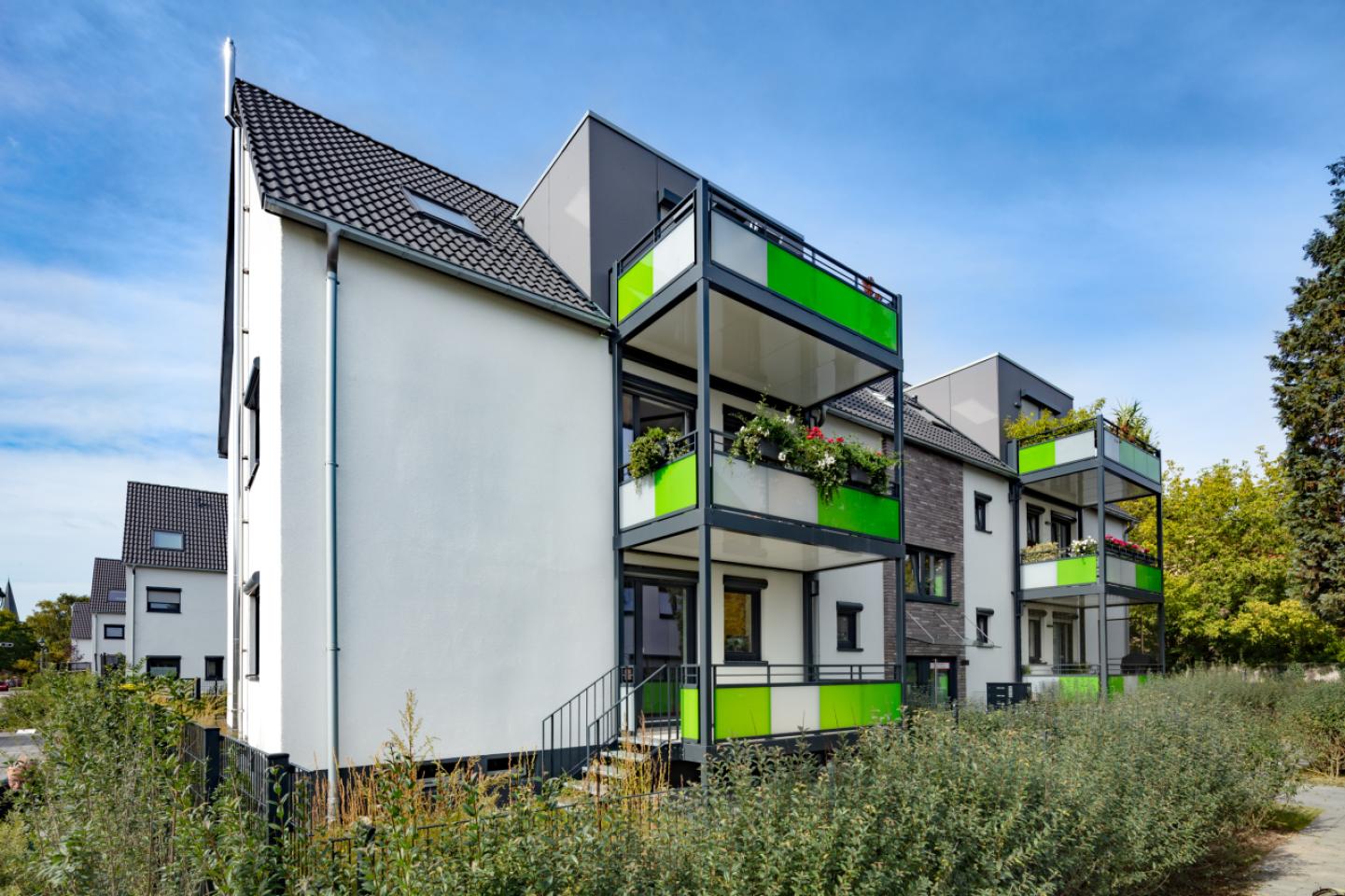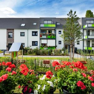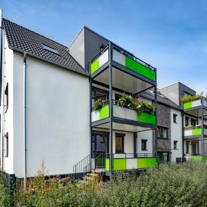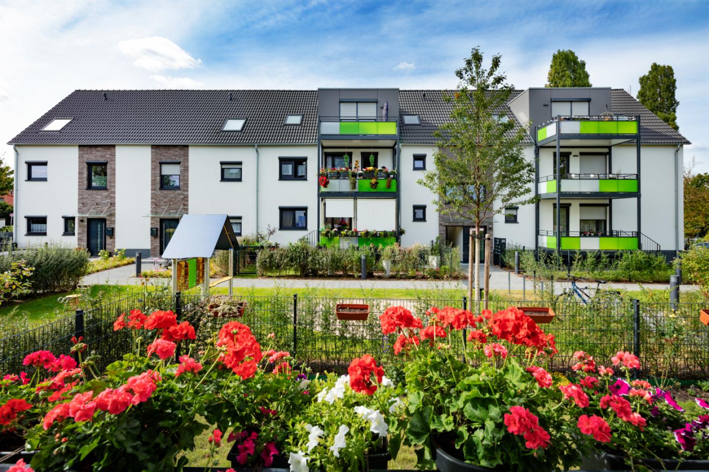 Die Modernisierung der Häuser an der Krahnenburgstraße 21-29 und 35 konnte planmäßig Ende 2021 abgeschlossen werden. Im September 2019 begannen die umfangreichen Arbeiten an den 1953/54 erbauten Mehrfamilienhäusern und der Neubau von sechs Einfamilien-Reihenhäusern. Rund um die sofort vollvermieteten Wohnungen und Häuser wurde im Sommer 2021 die Gestaltung der Außenanlagen beendet: Mit abschließbaren Müllstandorten, E-Bike-Ladestationen und Spielplätzen.